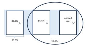 circling those doors adds an extra element to consider – it has its own probability – which is the sum of the 2 doors within its boundary